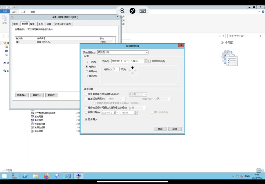 说明一声(to 高老师 我这里这个计划任务只有一次触发事件,但班上电脑有好几个触发点,选中下午的那一个(详细信息-每天下午15:50的那个))