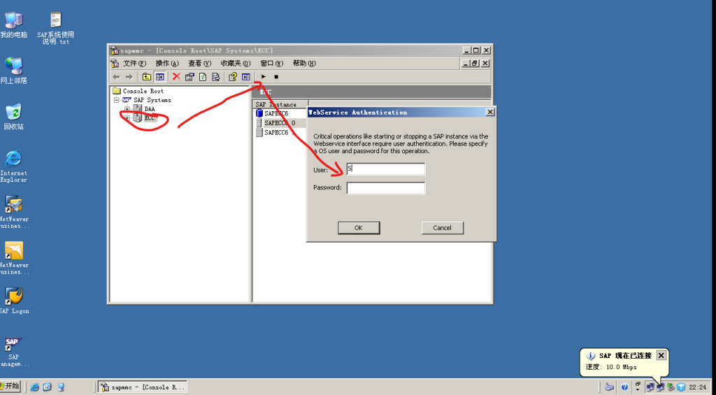 注意,假如虚拟机重启后需要手动启动sap erp的环境