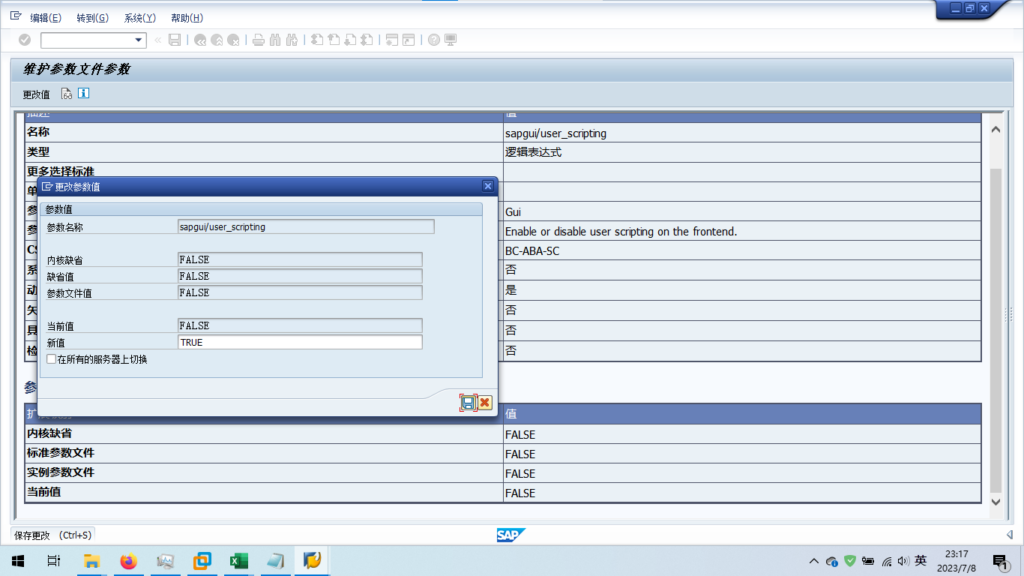 第三步: 选择更改值按钮,新值改为TRUE,并保存(可能是临时改动),如上图