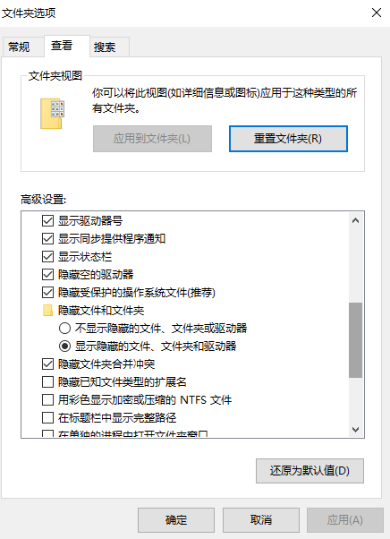 假如想要显示隐藏的文件夹,点击显示隐藏的文件、文件夹或驱动器选项