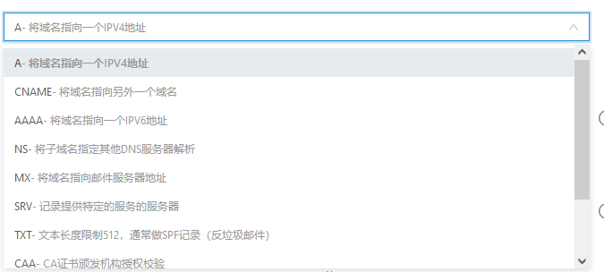 权威域名服务器可以设置如下的记录用来应答(以下界面为阿里云解析的截图)(可能不全)