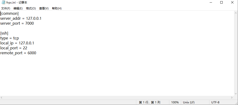 你可以选择frps.ini这个是简略的配置文件,里头只能设置一个端口,这个端口用于服务器与客户端的联系。