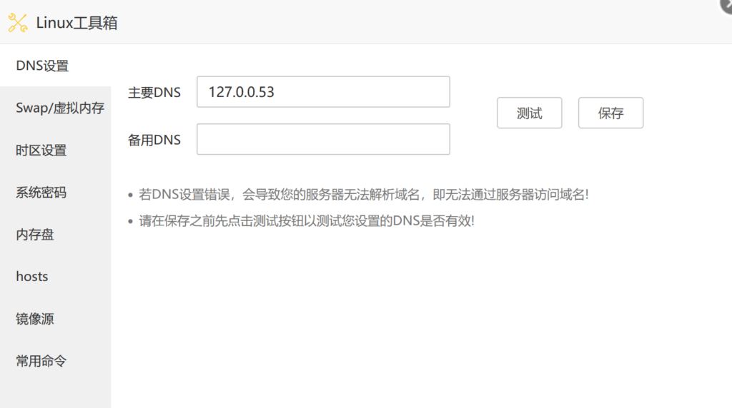 假如你有宝塔面板在你的ubuntu服务器上,你可以通过安装Linux管理工具箱,然后前往dns解析设置更改即可,如下图。注意,这里的设置为临时的