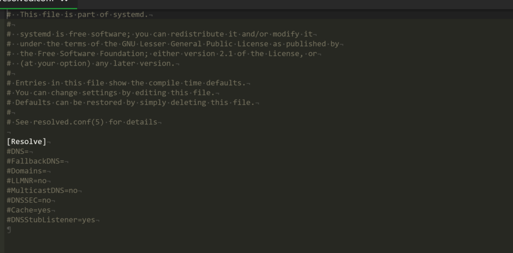 你先需要用编辑器打开/etc/systemd/resolved.conf 这个文件,如下图