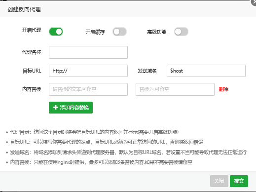 自己命名一个代理名称,然后目标url填写127.0.0.1:3001,提交即可