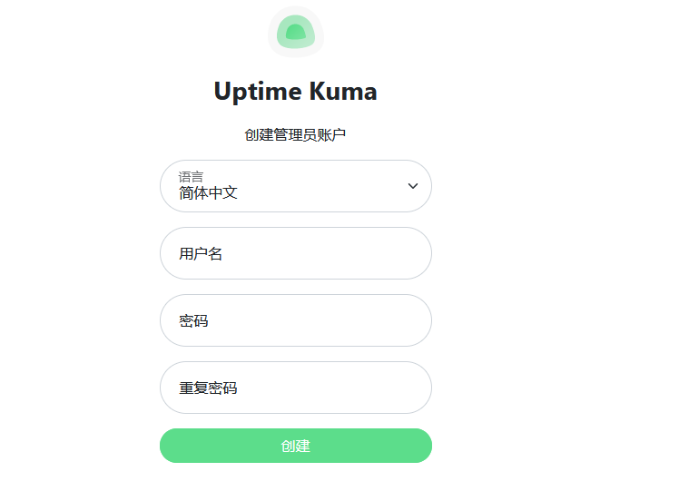 这段命令执行完毕之后(假如没有权限请给予对应的权限即可),uptime-kuma已经在你的http://你的ip:3001端口开始运行了,通过浏览器访问这个页面就能开始初始化Uptime-kuma了,如下图中的界面