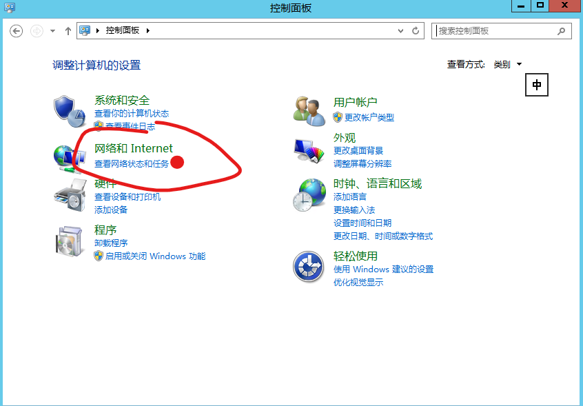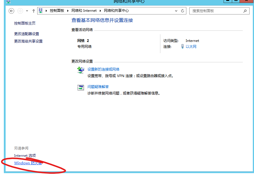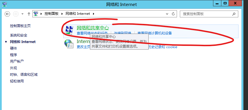 首先远程桌面连接到服务器主机,然后前往控制面板,点击网络和 internet