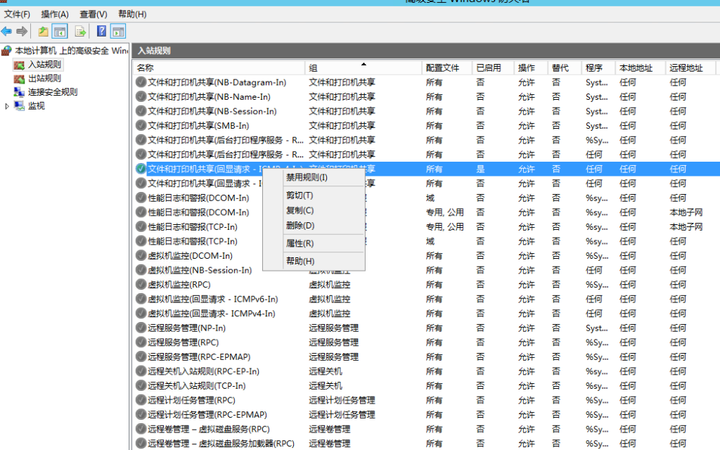 刚刚安装完windows server,但是用了一段时间以后发现windowsserver默认关闭了被ping功能,我们无法ping的通刚刚安装的windows server系统,虽然说这样子确实会比较安全,避免掉一些网络攻击,但是也带来了诸多不便,比如说无法直观的测速以及监测服务器的状态,所以这篇博文就是讲解如何开启服务器的该功能让windows服务器能够被ping通