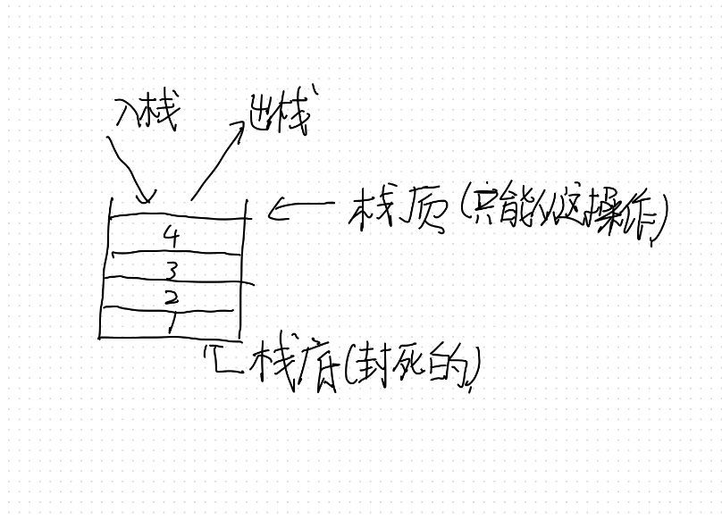 首先排名第一的就是栈区,那么,什么是栈区呢?所谓栈,是一种特殊的存储结构,只能从一端进行操作(限定仅在表尾进行插入或删除的线性表),即后进先出的一种储存结构,如下入所示
