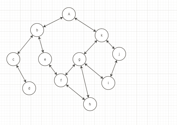 当前在A点,A与b、k连接 ,b、k没有遍历过,前往b 当前走过的路径:A