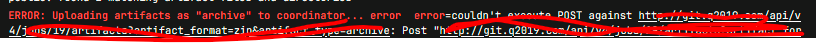 原因:网络连接有问题导致runner的产物上传不到gitlab。