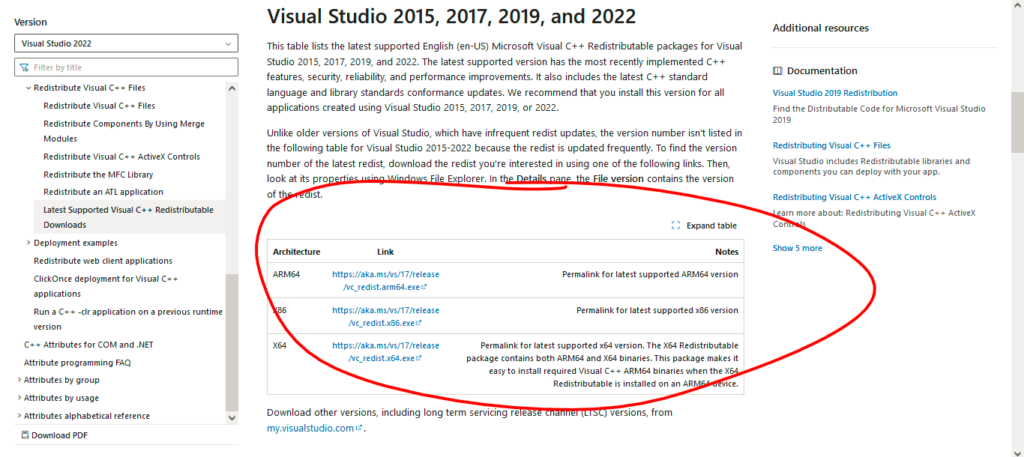 找到上方红圈圈起来的地方,下载对应版本的文件,然后点击安装,重新打开文件,问题解决。(上面给的链接适用于visual stdio 2015 2017 2019 2022)