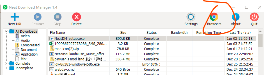 NeatDownloadManager是一个非常轻量级的下载器,相比于IDM(Internet Download Manager),最主要的就是NeatDownloadManager是完全免费的。NeatDownloadManager用于接管浏览器的默认下载程序,并用多线程技术下载让你电脑以能够达到的最高速度从网上下载东西(相当于迅雷的一部分),并且真个软件十分轻量,整体不到1mb大小。