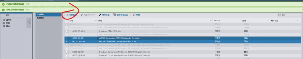 然后选中显卡(反正与那张显卡相关的全部选上),点击左上角的切换直通按钮