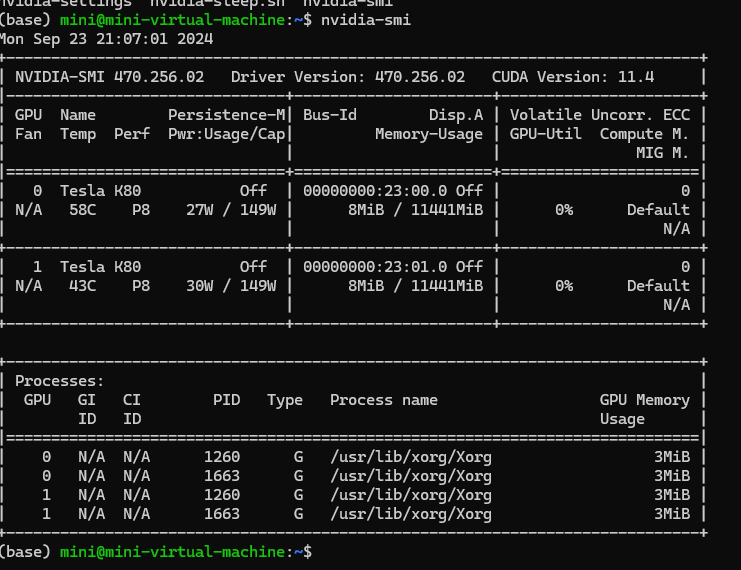 我这个服务器上面插的是一张NVIDIA的K80显卡,当我们正常安装好驱动之后,我们可以通过nvidia-smi这个命令来读取到显卡的温度