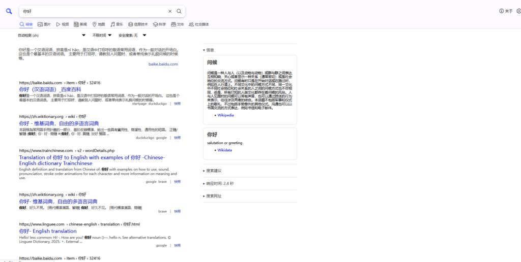 searxng是一个基于python的,完全开源的一个搜索引擎结果聚合软件(可以说是一个可以自己部署的私有化搜索引擎)。通过使用searxng进行搜索,可以在一个页面中同时获取来自百度、bing、yandex等搜索引擎的结果。这个软件通过将你输入的搜索词发送到各个搜索引擎之中,然后将各大搜索引擎返回来的结果根据自己的算法进行重新排序,返回给用户。通过使用这个searxng,不仅可以避免自己被各个搜索引擎的跟踪器跟踪,而且(也是最重要的),由于数据是searxng处理过的,所以理所当然,搜索结果是没有任何广告的。