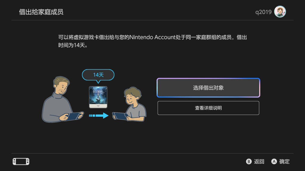但是,请注意,这一借出只有14天,14天后游戏卡会自动归还,只能借出虚拟游戏卡给家庭成员,不能借出给好友或者陌生人