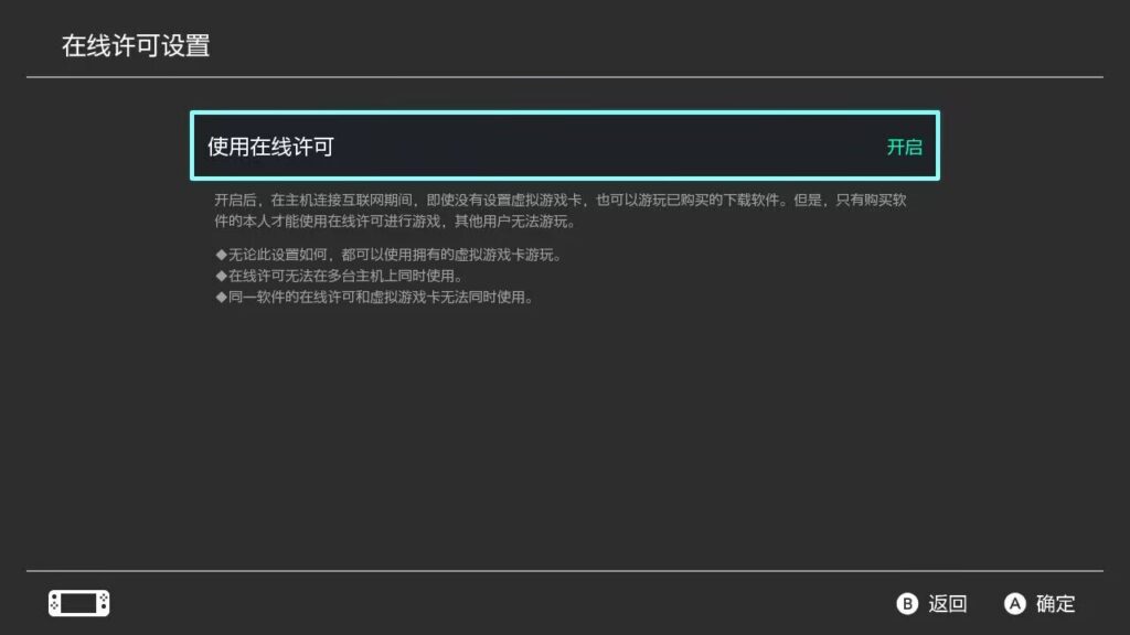 在新机制下,设置了虚拟游戏卡的主机可以离线游玩(就如之前的主机器一样),而其他的机器只要在账号界面打开”在线许可设置”,便可以在无虚拟卡带,有网的情况下游玩。
