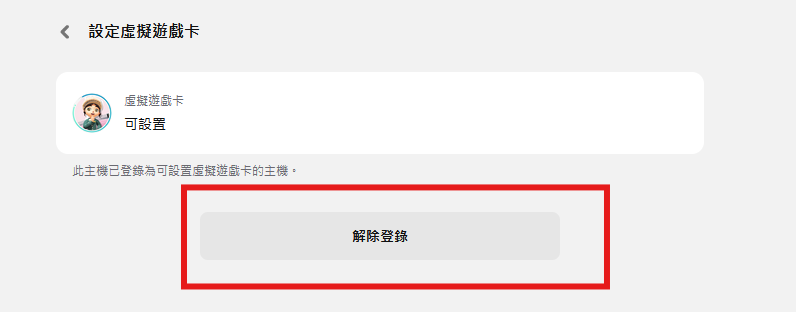 7. 解除後,在手上的新主機上再次進行設置虛擬遊戲卡的操作便可