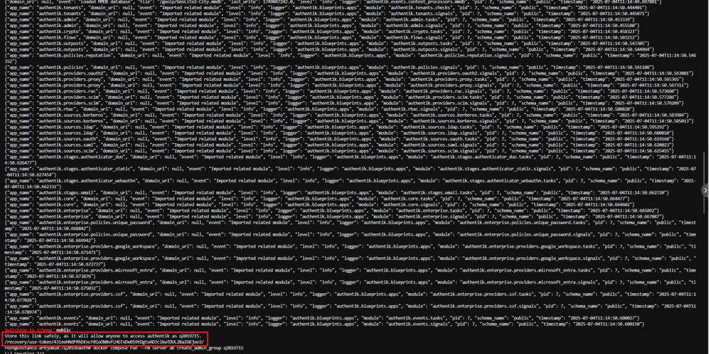 Store this link safely, as it will allow anyone to access authentik as q2019715.