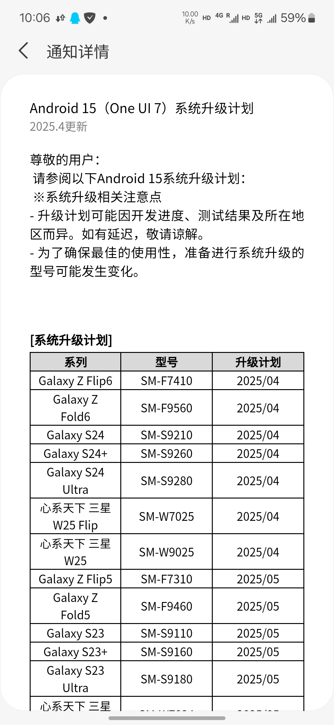 2025-4-16,三星在社区发了oneUI7推送通告,期待到时候的手机系统更新,我等oneui7等了很久。到时候我来尝尝咸淡😉